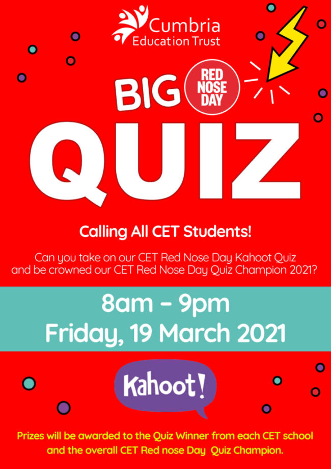 Calling All CET Students! The CET Big Red Nose Day Quiz is taking place on Friday 19 March 2021. Can you take on our CET Big Red Nose Day Kahoot Quiz…