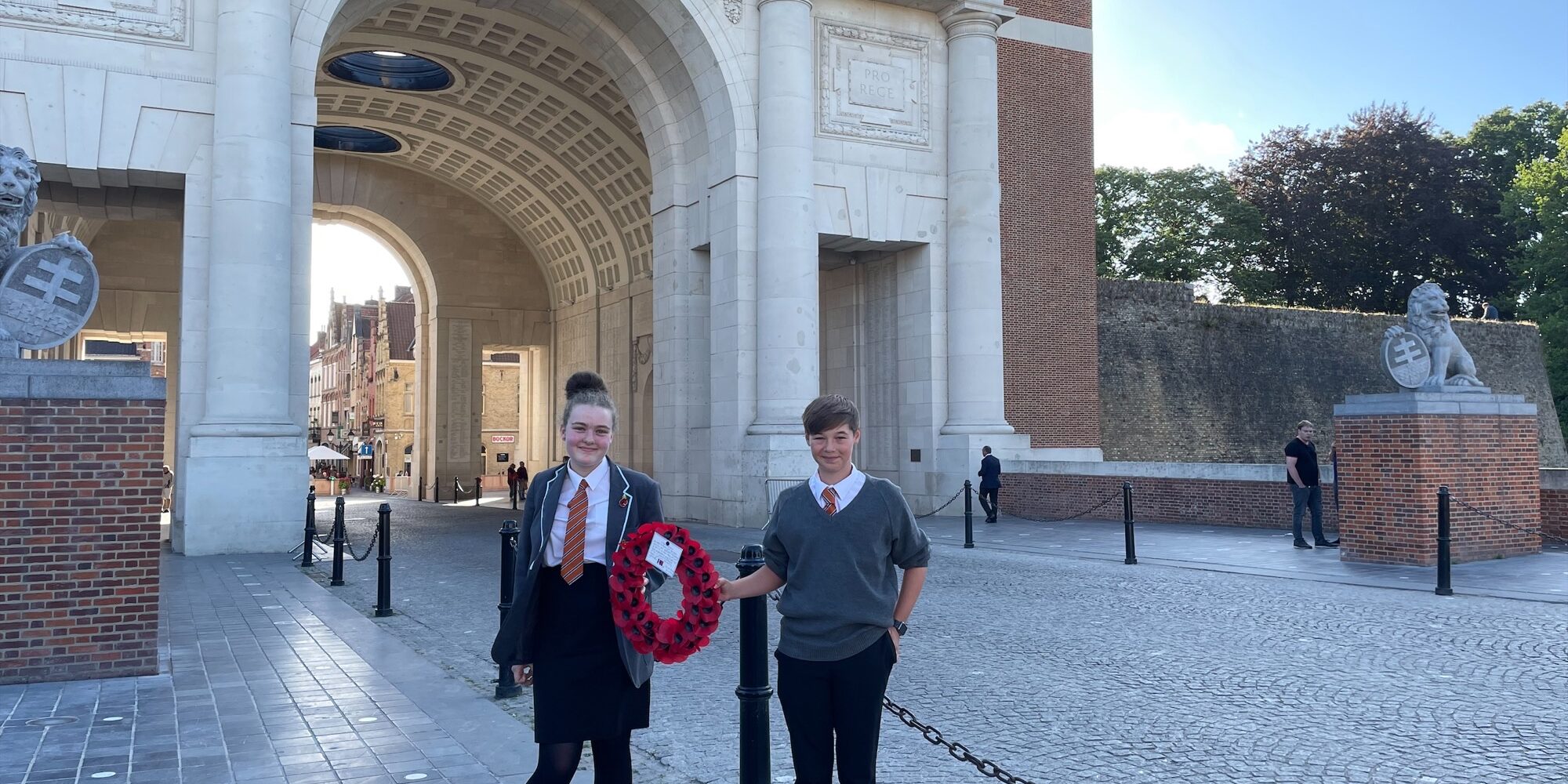 On Thursday evening, Chloe and Alex took part in the Last Post ceremony at the Menin Gate. Students and staff watched as they represented the Whitehaven Academy brilliantly by laying a wreath with a message written by Holly. They were a credit to themselves and the academy and the other students watching were very proud of them, as were the staff. Well done!